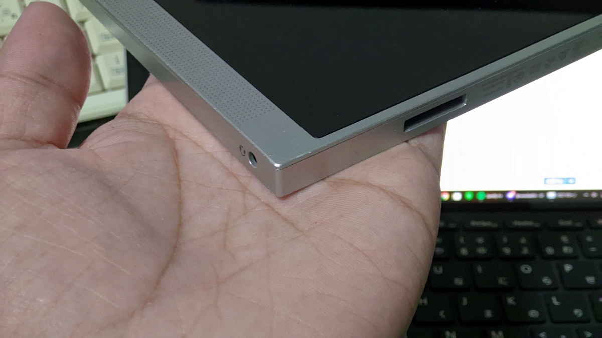 ここの部分ですが、ほとんどのタブレットPCでは角が丸まってることが多いのですが、このPCはこの画面下部のところが丸まってないのでタブレット状態で持った時に手に突き刺さって(?)痛いですね。